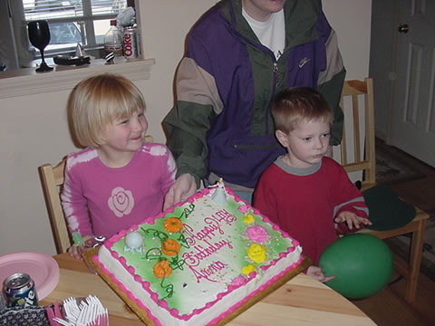 Anna and Brady with Mommy (Michelle) holding up the cake.