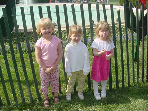 Anna, Anna T. and Julia posing near the fountain outside the White House.
