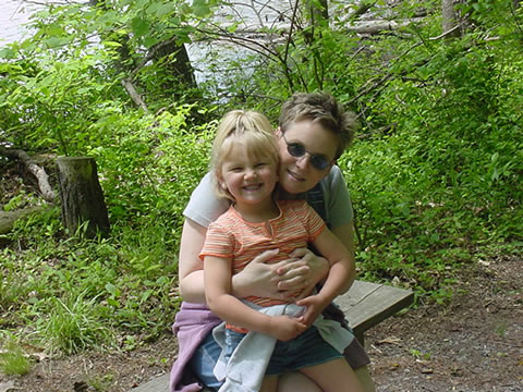 Anna and Mommy posing on the bench.